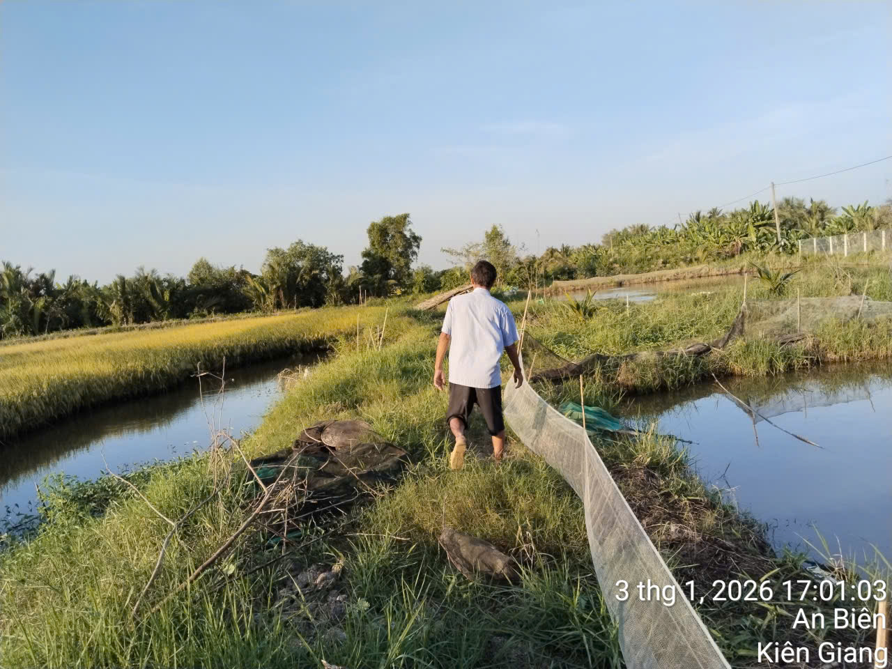 Giữa trưa nắng chang chang, khi nhiều người tìm chỗ nghỉ ngơi, anh Mười vẫn có mặt ngoài đồng. Có khi là để chỉnh lại bờ ruộng, có khi là dẫn nước cho kịp thời, tránh cho lúa bị khô gốc. Mồ hôi thấm đẫm lưng áo, đôi bàn tay chai sần vì nắng gió, nhưng anh chưa bao giờ than vãn.