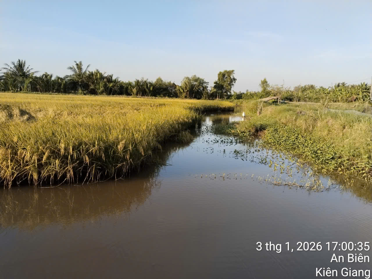 Không có những máy móc hiện đại hay quy trình công nghiệp phức tạp, việc chăm sóc lúa trên cánh đồng Anh Mười chủ yếu dựa vào kinh nghiệm tích lũy qua nhiều mùa vụ. Anh Mười hiểu rất rõ từng giai đoạn sinh trưởng của cây lúa: lúc nào cần nước, lúc nào phải tháo nước, thời điểm bón phân ra sao để cây phát triển tự nhiên mà không bị “ép lớn”.