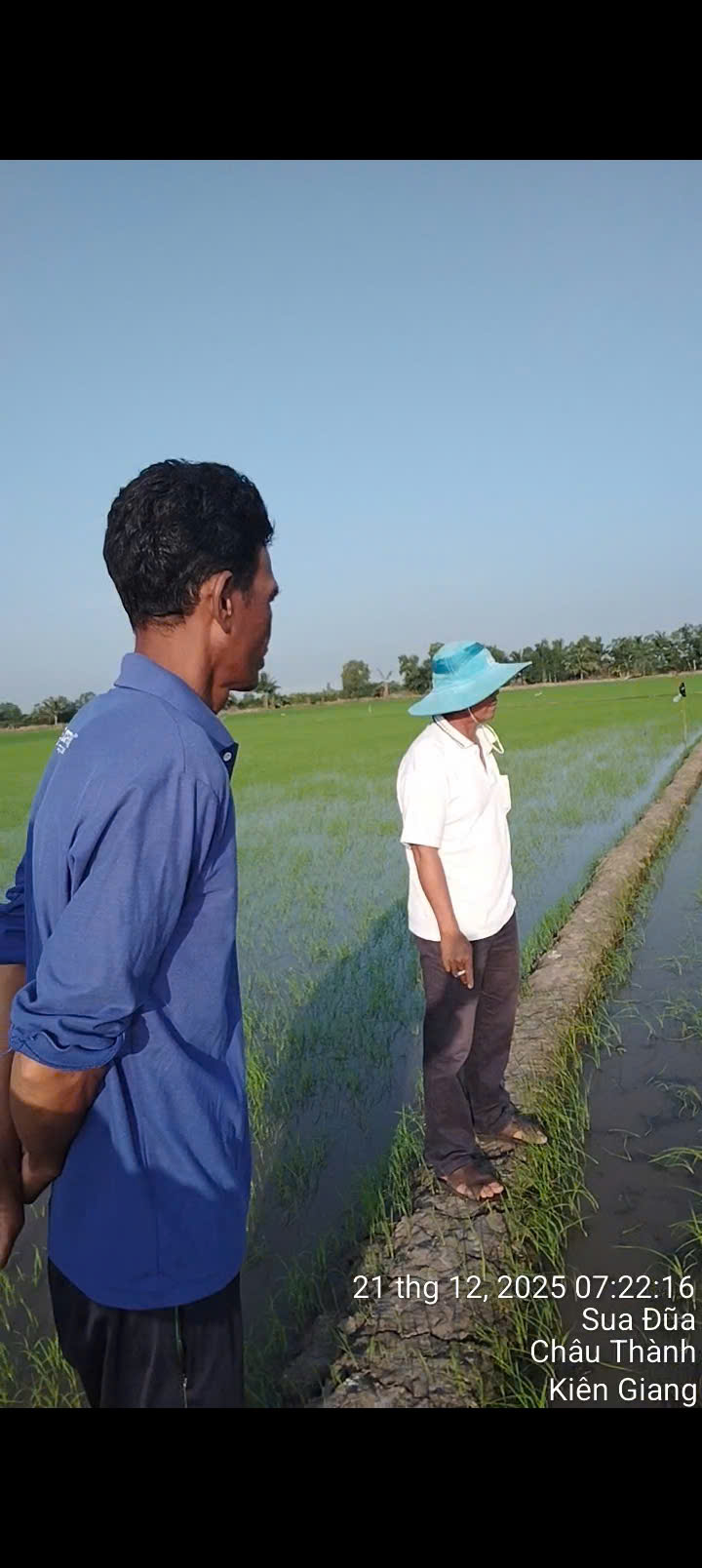 Anh bước ra đồng từ rất sớm, đôi chân quen thuộc với bùn non, tay cầm chiếc nón lá đã sờn theo năm tháng. Việc đầu tiên trong ngày là đi dọc thửa ruộng, quan sát từng khóm lúa: cây nào thiếu nước, cây nào có dấu hiệu sâu bệnh, mực nước trong ruộng đã phù hợp hay chưa. Với anh Mười, cây lúa cũng như con người, phải hiểu, phải chăm thì mới cho hạt gạo ngon.